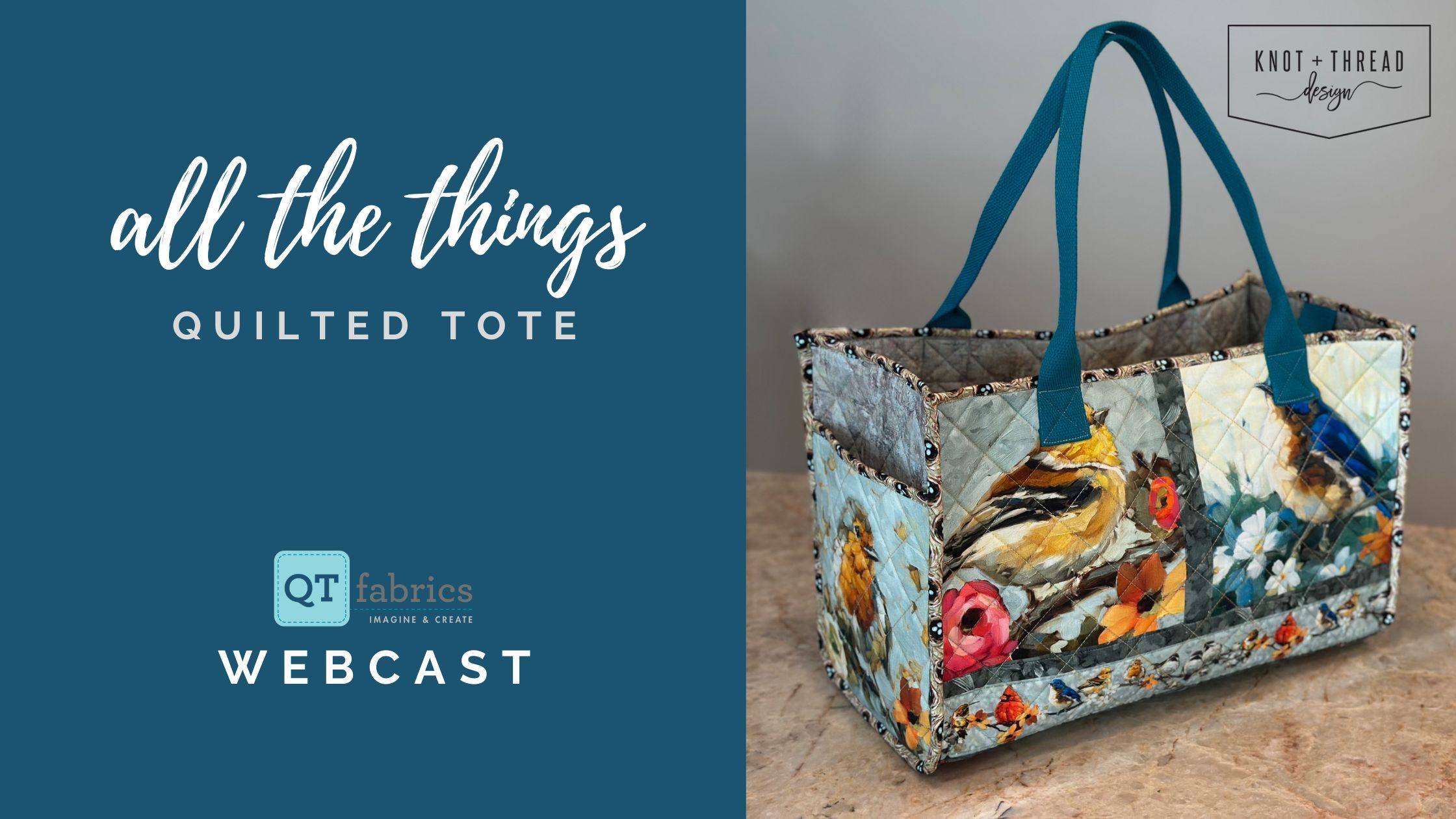 Create the "All the Things Tote" by Knot + Thread Design, featuring beautiful bird-themed fabrics by QT Fabrics. With matching notions and hardware, this tote will be your go-to to carry ALL THE THINGS. Quilt the exterior in a variety of Sulky thread types and weights, depending on your desired finished look.