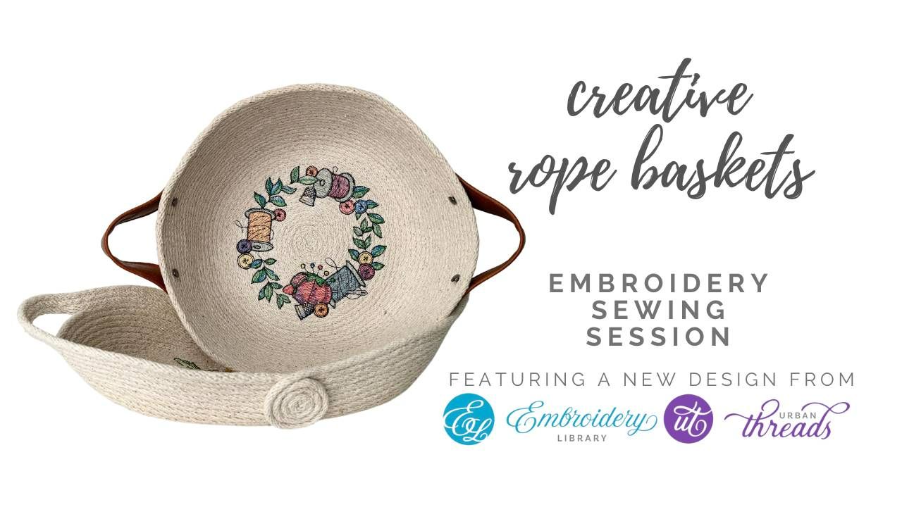 Learn how to embroider directly onto a rope base to create a fun and functional basket. Plus, you'll learn how to add designer touches, such as different handles, fabric strips, and inserts.